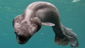 With prehistoric features and luminescent eyes, the sixgill shark swims at depths up to 6,500 feet. Reaching lengths of 16 feet, it preys on everything from cod to dolphins. A fascinating adaptation, its pineal window—a light-sensitive patch between its eyes—helps detect dim light in the deep.