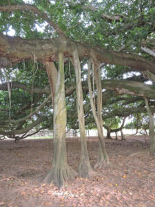 Unlike the iconic Samán of Guacarí, a now-fallen Samanea saman once featured on Colombian currency, the Giant Fig of San Marcos is a Ficus, a genus that includes many species known for their ornamental use and dramatic aerial roots. But what truly sets this tree apart is its self-supporting architecture. Its heavy, far-reaching branches stretch so wide that the tree has developed aerial roots, which descend like vines and harden into vertical pillars, supporting the massive limbs from below. These natural columns create the illusion of a building’s foundation—a botanical basilica of sorts, where sunlight filters through a vaulted canopy of green. In fact, many in Latin America refer to it as “The Tree That Walks,” alluding to how it sends out new limbs and roots to spread wider, seeking sun and nourishment.