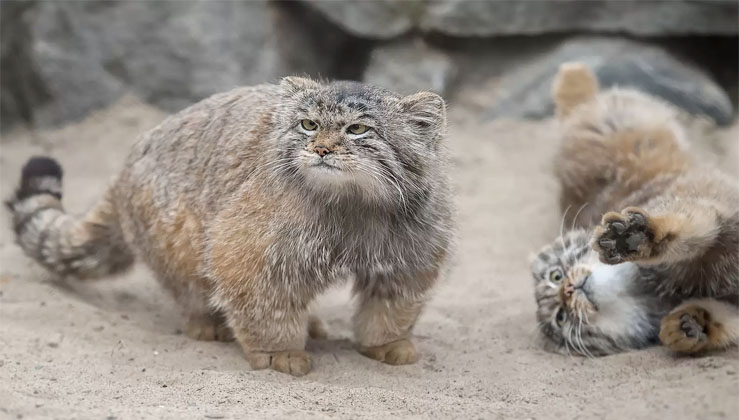 Pallas’s cats are often mistaken for domestic cats due to their similar size, but they come with some endearing differences. With short legs, dense fur, and round, flat faces, they look almost like animated plush toys brought to life. However, their fluffy appearance hides their true build—they are surprisingly light and small, with fur that serves as essential insulation in cold, alpine climates. Expert climbers, these wildcats are well-suited to high-altitude life. Their ability to navigate rocky crevices and steep cliffs gives them a natural advantage in such rugged terrain.