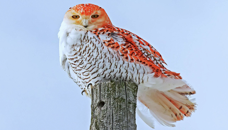 But this winter, one particular owl has become a celebrity in birding circles. Unlike its peers, which typically sport snow-white feathers with occasional specks of gray or brown, this owl has been described as having an unmistakable reddish-orange hue, giving it an eye-catching and almost whimsical appearance.