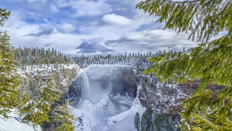 With an impressive vertical drop of 141 meters (463 feet), this awe-inspiring waterfall plunges along the Murtle River and ranks as the fourth tallest waterfall in Canada based on uninterrupted vertical drop. Its striking presence played a major role in the establishment of Wells Gray Provincial Park in 1939, a testament to its powerful beauty and ecological importance. While waterfalls typically shine in the spring and summer months, when flowing water and lush greenery create postcard-perfect scenes, Helmcken Falls has a unique charm that shines year-round. In fact, some visitors argue that the falls are at their most enchanting during winter — all thanks to a fascinating natural phenomenon: the snowcone, often dubbed a “snowcano.”