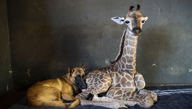 Loyal Dog Becomes Guardian Angel to Abandoned Baby Giraffe